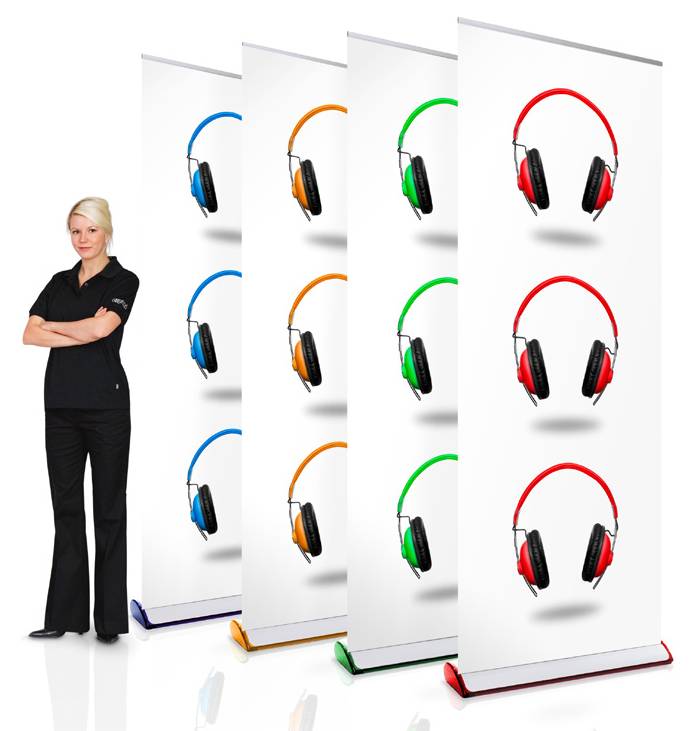 Erittäin laadukas, pitkäaikaiseen käyttöön tehty roll up kuvateline.